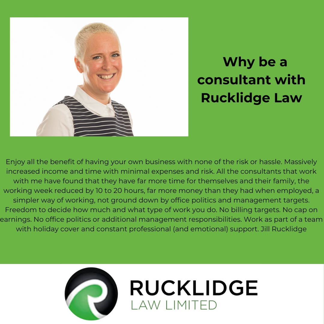 - As a consultant solicitor with Rucklidge Law, you can earn as much as you like. You can work 20 to 30 hours a week for double or triple your income or work less to equalise your income.